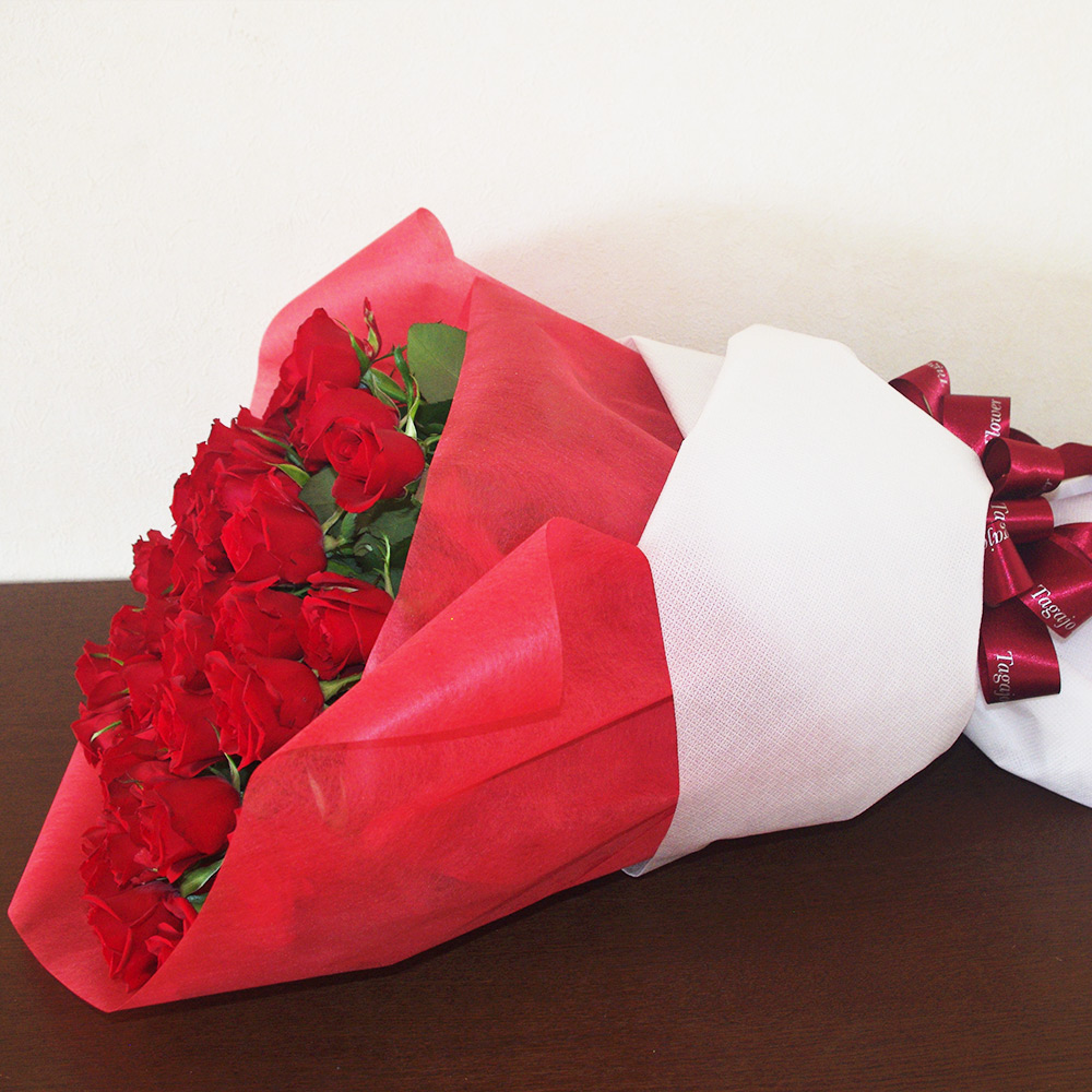 「偶然の出会い」から付き合うことになったカップルには、永遠に続く「愛情」を込めて50本の花束でプロポーズを♪ - 高さ 約60 cm x 幅 約50cm